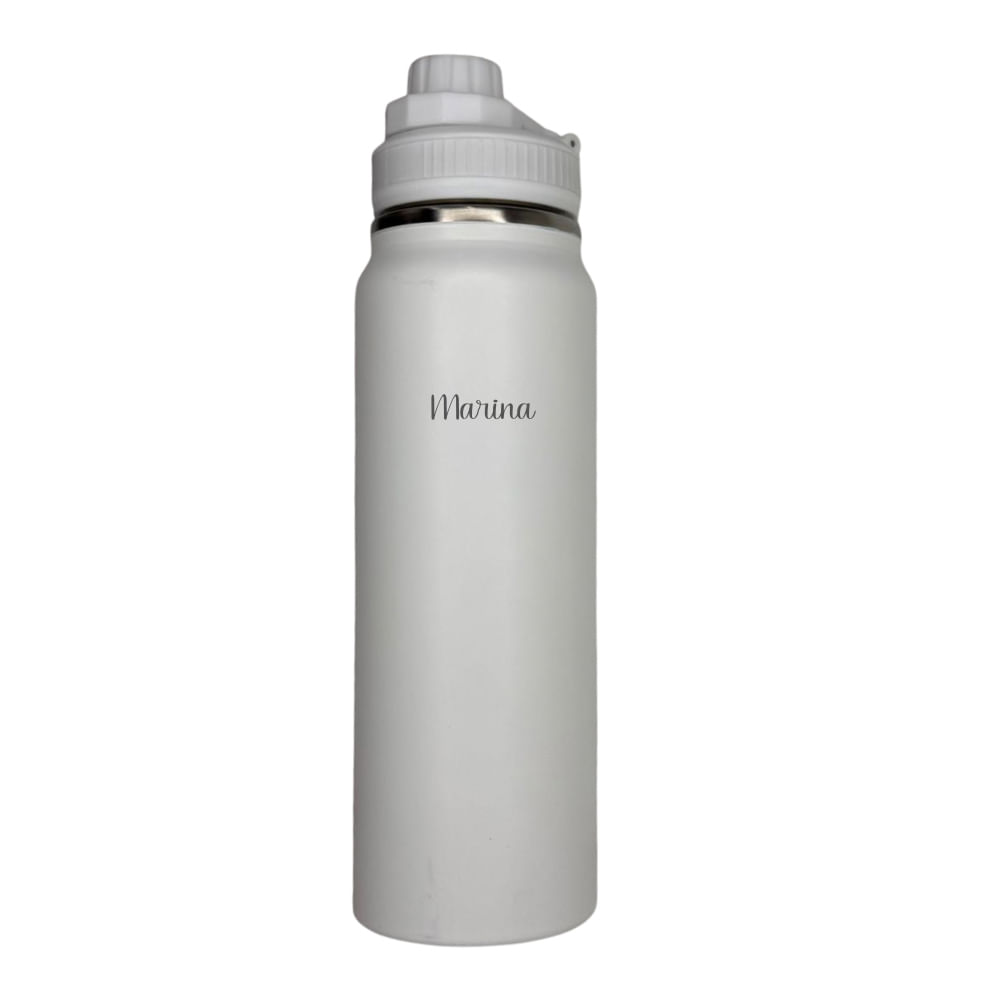 Garrafa de Água 800ml Térmica Branca - TudoComNome