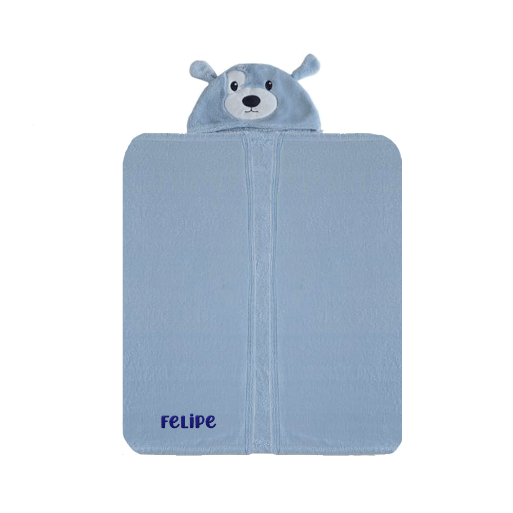Manta com Capuz Pimpolho - Cachorrinho Azul