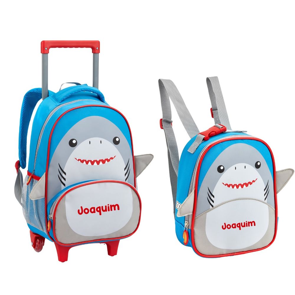 Kit Mochila de Rodinhas + Lancheira Infantil TudoComNome - Tubarãozinho