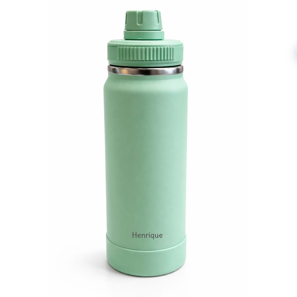 Garrafa de Água 800ml Térmica Verde Pastel - TudoComNome