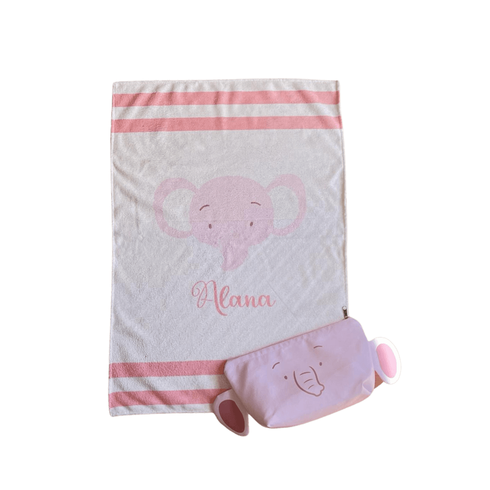 Kit Necessaire + Toalha de Rosto Elefante - Rosa