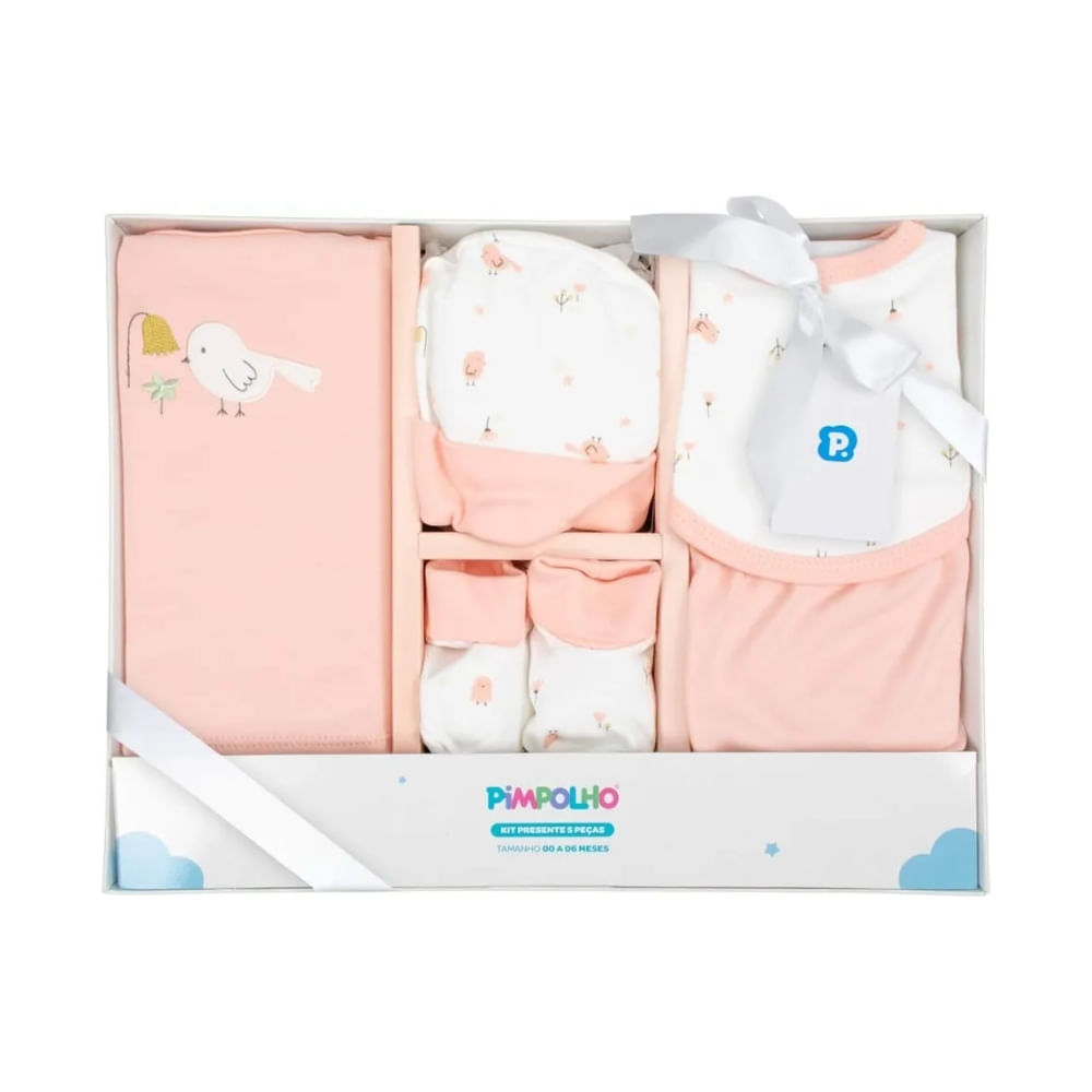Kit Presente 5 peças 0-6 meses Pimpolho Menina Rosa - Pássaro