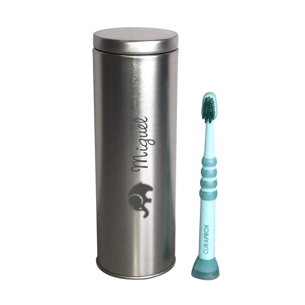 Kit Escova de Dentes Infantil Curakid Curaprox - Azul na Latinha Cílindrica