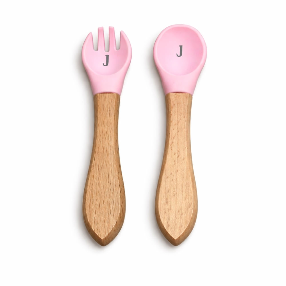 Kit Talheres Silicone TudoComNome - Rosa
