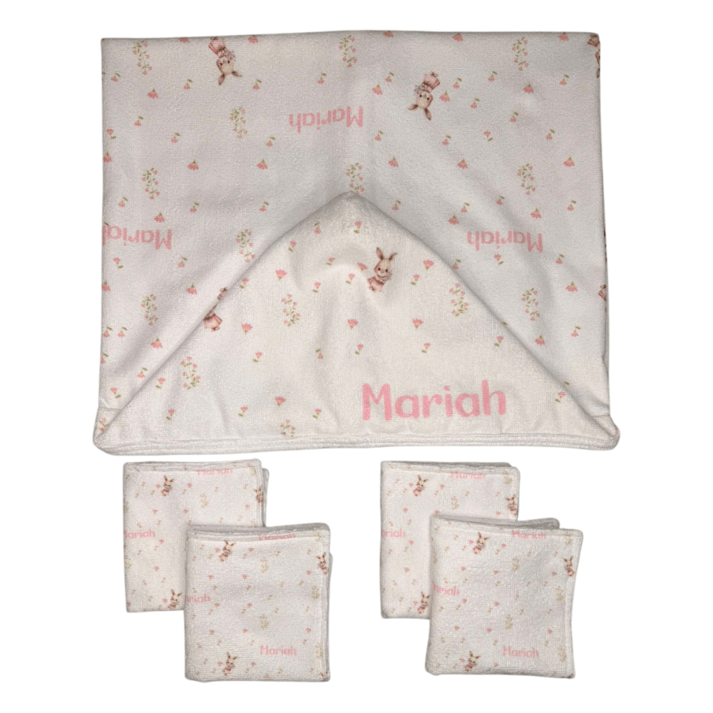 Kit Toalha de Banho + 4 Toalhinhas de Boca Personalizadas