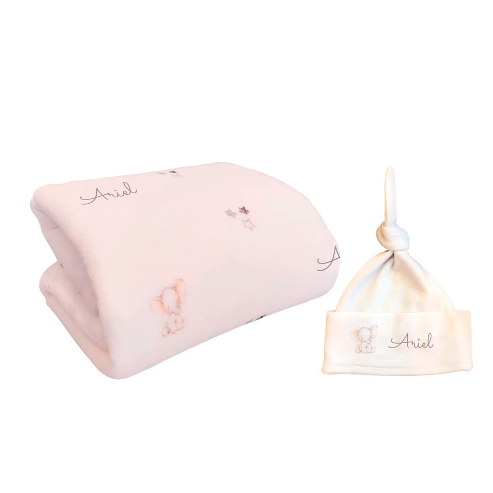 Kit Manta Dupla + Gorrinho Malha Com Nó TudoComNome - Branco