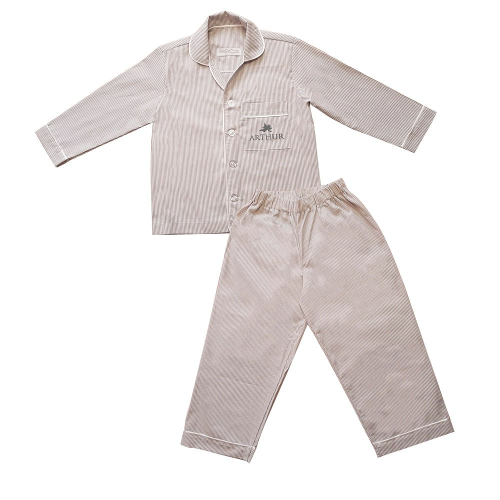 Pijama Listrado Manga Longa TudoComNome - Cinza