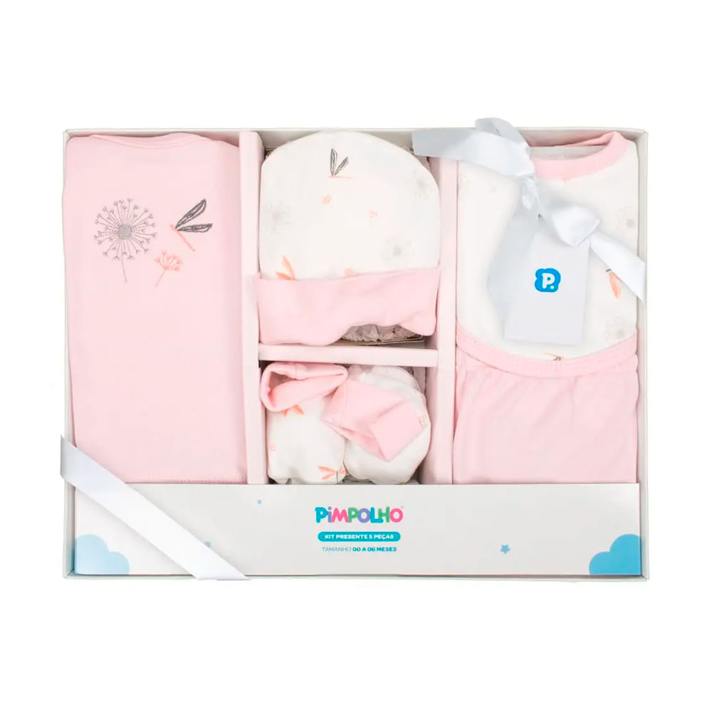 Kit Presente 5 peças 0-6 meses Pimpolho Menina Rosa Libélula